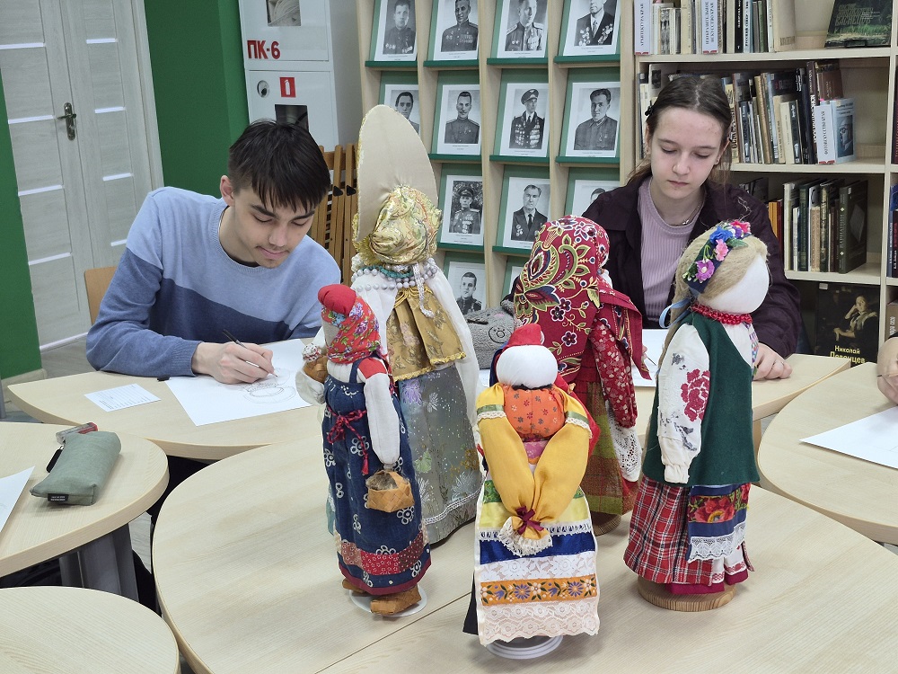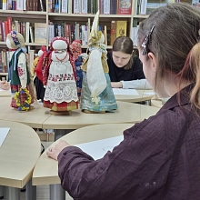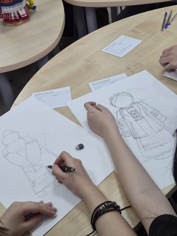 В рамках мероприятия для студентов была организована практическая часть - выполнение набросков с натуры тряпичной куклы, представленной на выставке.